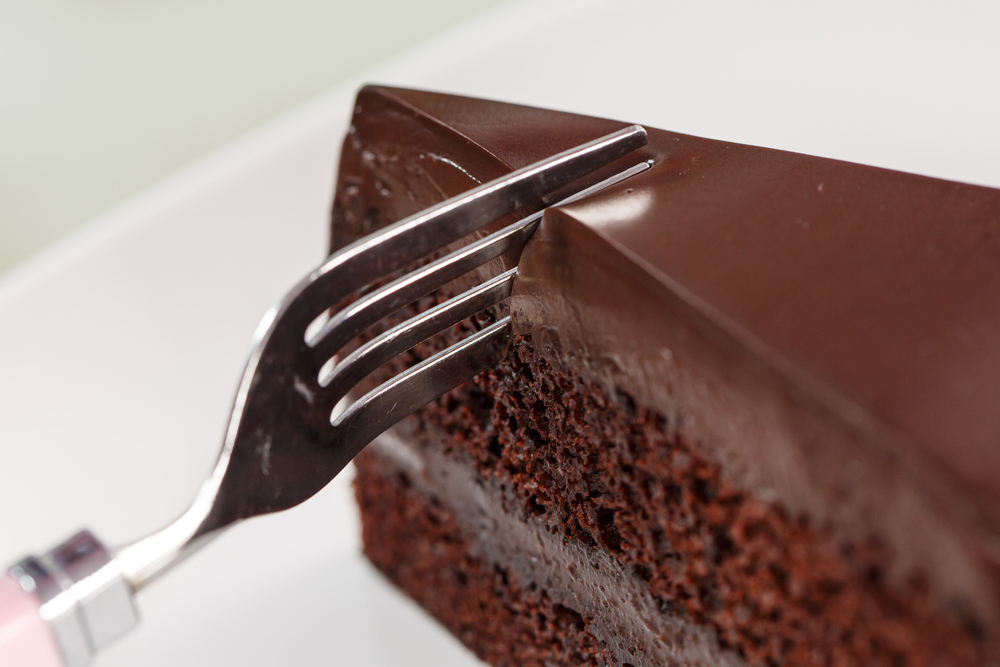 Chocolate cake on white dish